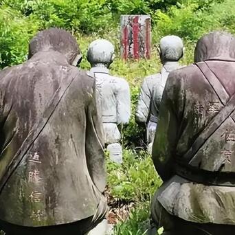 抗战胜利后,为缅怀数万阵亡将士,当地政府和民众在腾冲会战的主战场修建了这座国殇墓园。园中除了烈士陵墓,还有一座令人触目惊心的纪念雕塑:四名穿着军装的日本兵,以屈辱的跪姿被固定在墓园台阶下。他们低垂着头,面部表情愧疚而哀戚。雕塑背后,则镌刻着"倭塚"二字,似在提醒后人勿忘国耻。